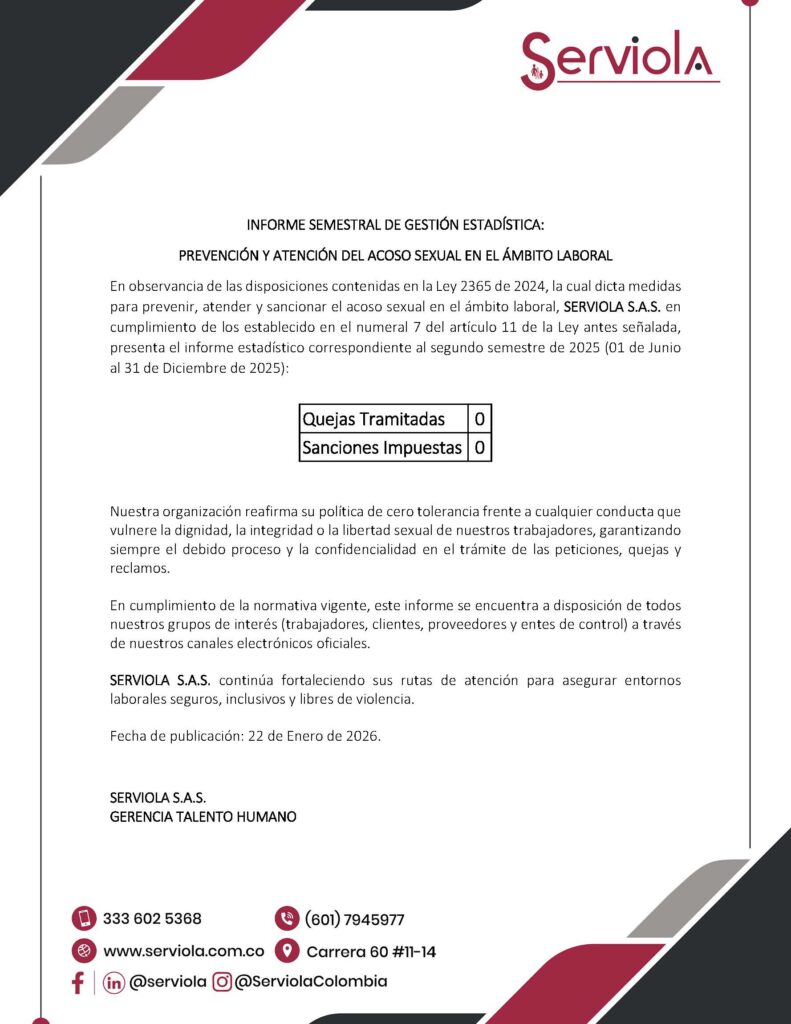 📊 Informe Semestral SERVIOLA – 🛑 Prevención del Acoso Sexual Laboralenero 23, 2026 Leer más